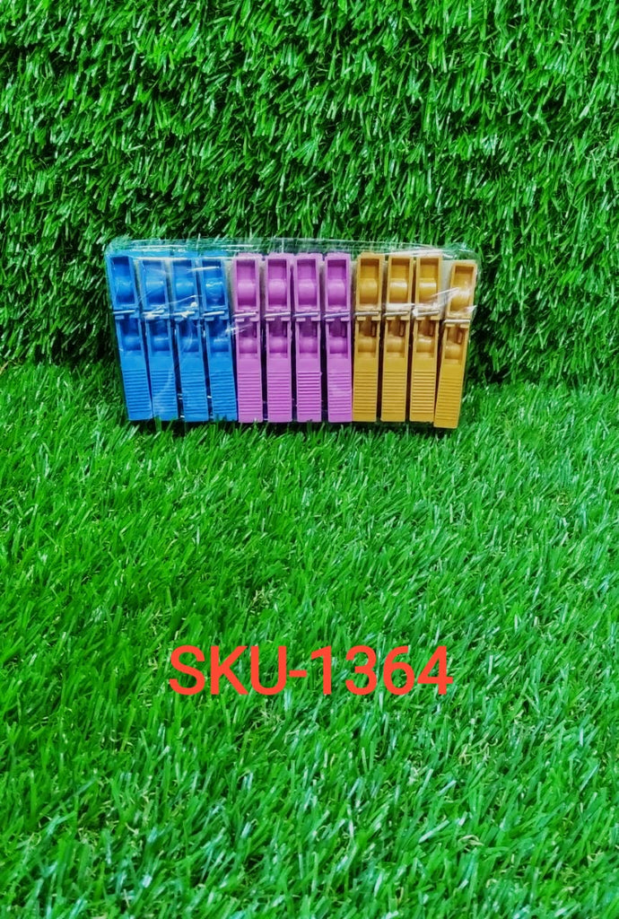 Plastic Multipurpose 12 pieces Clothes Pegs/Hanging Clips/Cloth Drying Clips(1364) (Multicolor)