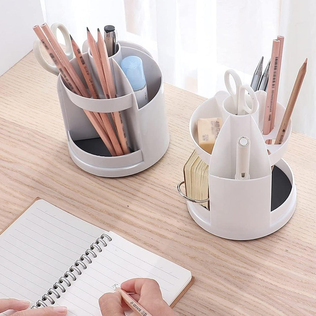 Plastic Rotatable Pen Holder, Pencil Marker Holder for Desk Home Lipstick Gray|Multi-Function Desk Organizer, cardholder Storage Box for Desk, Makeup Organizer, Desk Accessories (1 Pc)