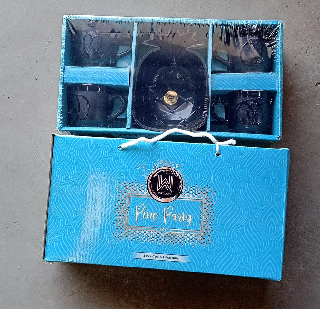 8245 Pine Party Ceramic Tea / cups / Mug Set With Pineapple Shape Serving Bowl Milk Cup, Coffee Cup, Tea Cup, Breakfast Cup, Drinking Mug or Outdoor for Household, Gift for Birthday, Wedding Party (5 Pcs set)