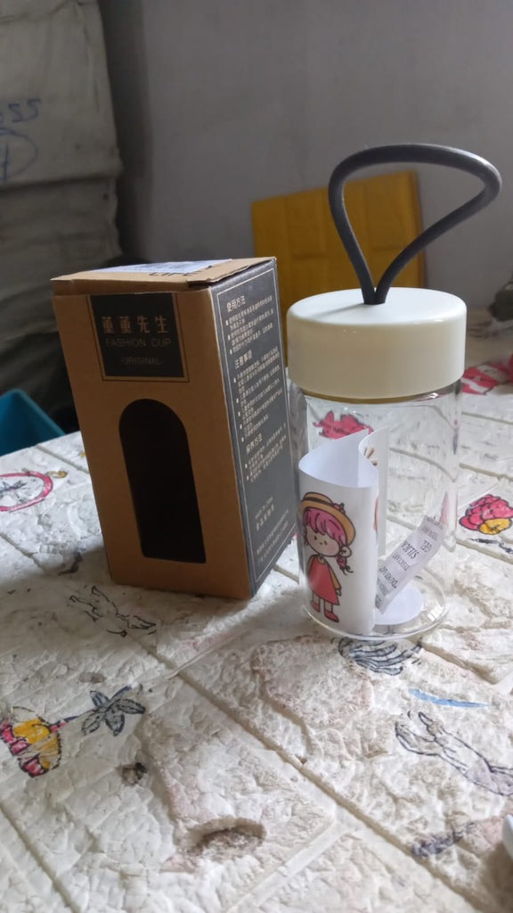 7335 Outdoor Sport Glass water bottle 350ml leak proof BPA-free for travel cold and hot water glass water bottle with daily water intake for gym and children, Home, Travel, Office Use