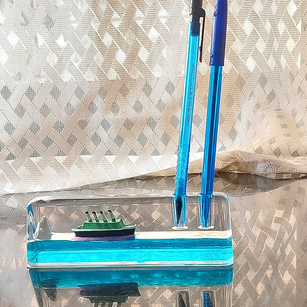 • This desk toy has a clear exterior and the inside is filled with soothing blue liquid, a floating titanic and an iceberg. You can gently tilt the paperweight to experience a soothing, stress relieving experience. Great for providing relief for kids and adults who suffer from anxiety.