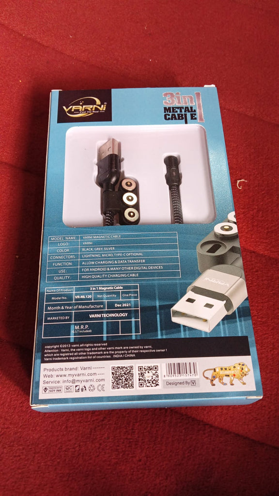 0301 3 in 1 Magnetic USB Charging Cable | USB-c Android and Lightning with Extra Protecting Nylon| Strong Magnetic Cable with Full Rotation Support Fast Charging (1 pc)