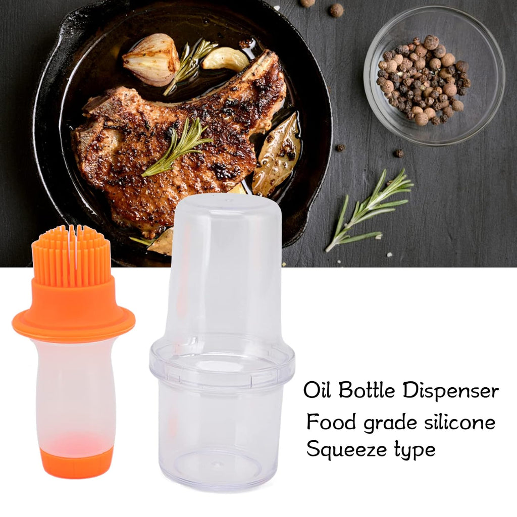 2 in 1 Oil Bottle With Brush Oil Dispenser With Silicone Brush for Cooking Baking BBQ Seasoning Kitchen Food Grade Oil Can, Portable Silicone Oil Bottle Brush with Lid (1 Set)