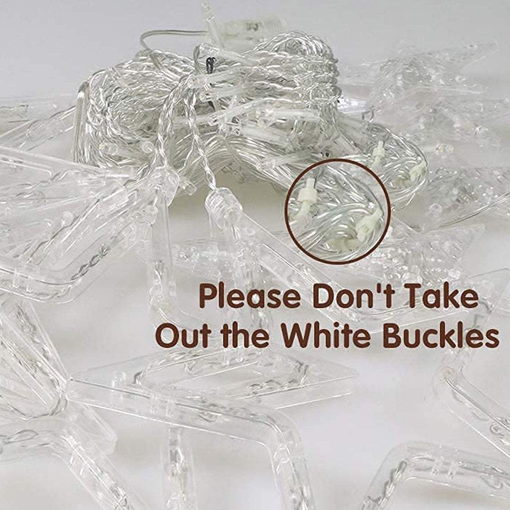• Easy to use : 12 Stars(2 sizes), total 66 LED curtain string lights, Low voltage and Listed power supply, directly plug in and unplug for power on and off