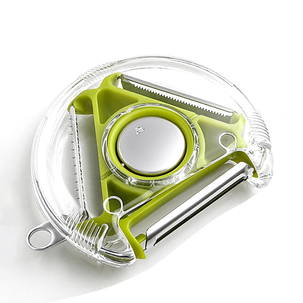 • The peeler is designed with three blades. You just need to change the button and you will get three different blades. And each sheet must be applied in the right place. They are respectively responsible for soft skin, hard skin and shred.