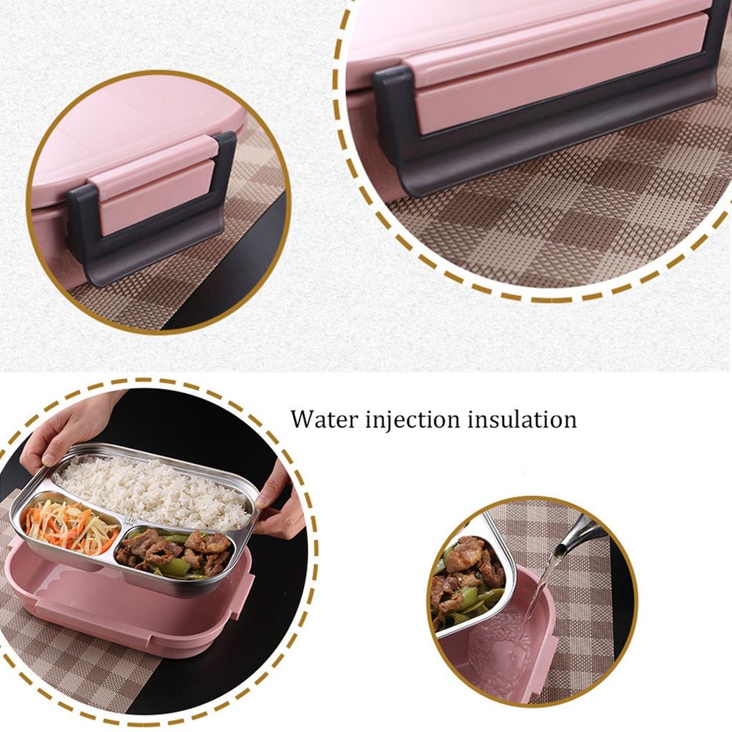 • Built to last reliable, food grade lunch boxes that features 3 compartments for your healthy meal plan the compartments are not leakproof). Made of high quality  Stainless Steel interior, with food grade PP outer box, durable for multiple time uses.