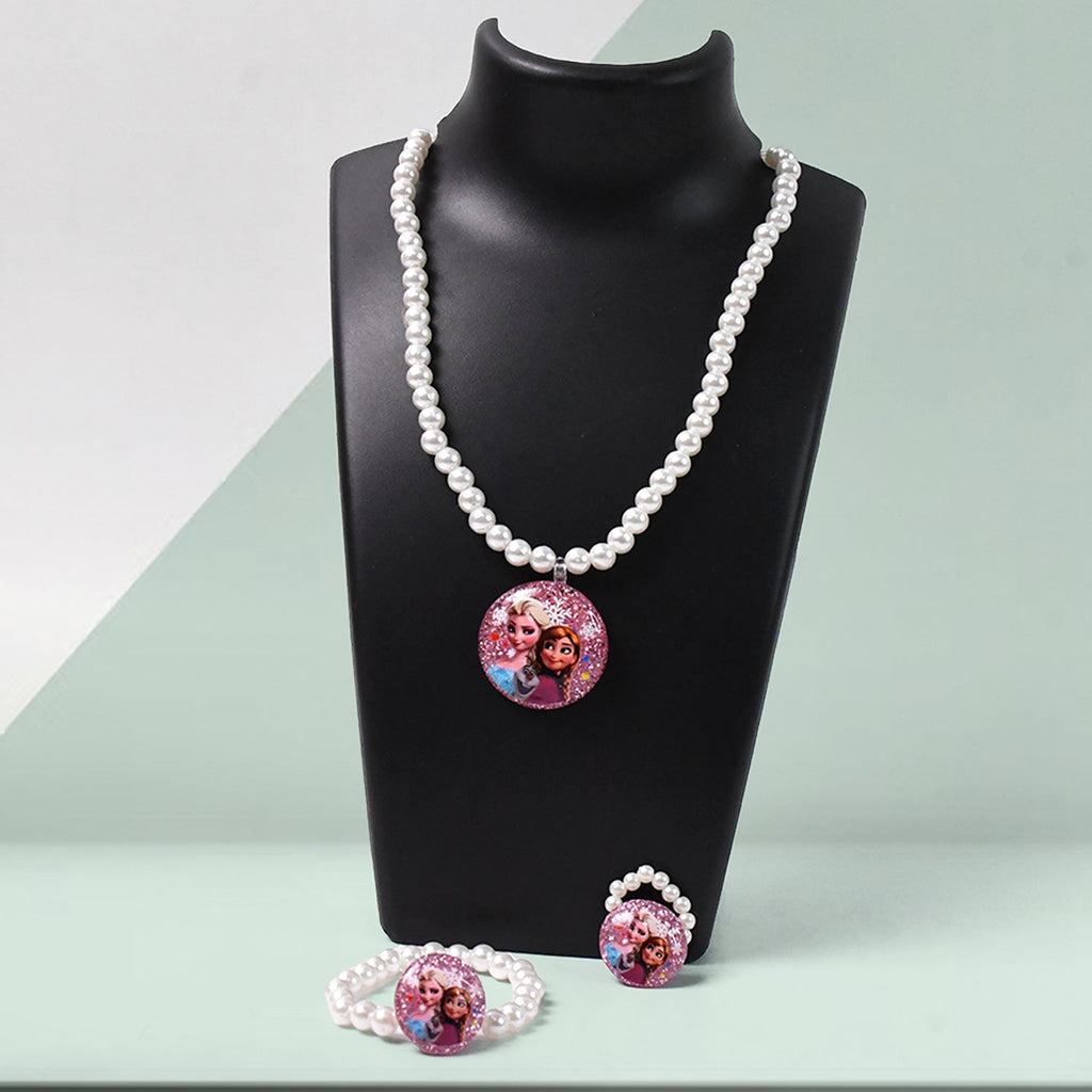Jewellery for Little Girls Princess Necklace Bracelet Set Includes Kids Beaded Necklace Bracelet for Toddler Christmas Birthday Party (3 Pcs Set)