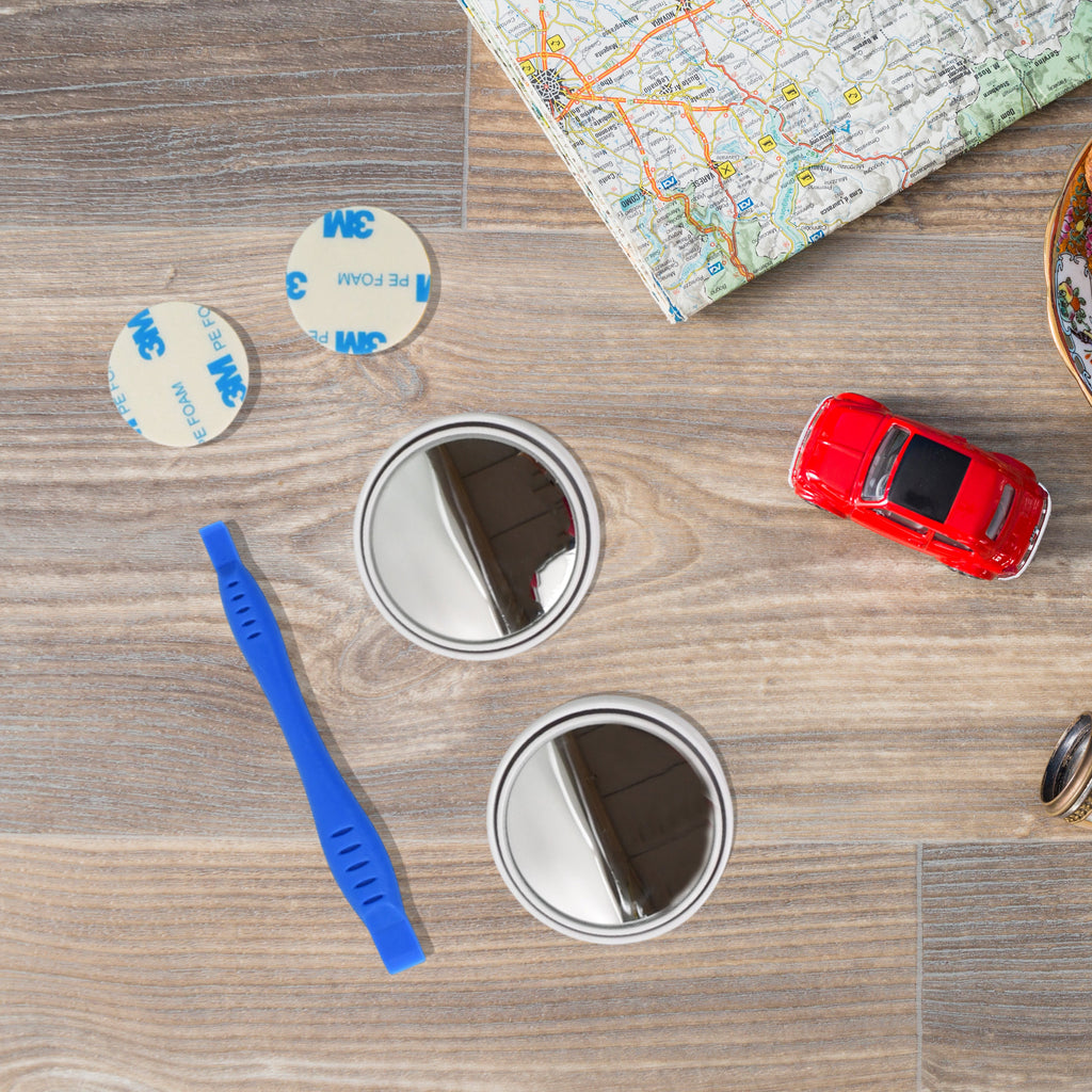 Car Blind Spot Side Mirror Round With Heavy Duty Plastic Spudger Pry Tool HD Glass Blindspot Mirror Convex Rear View Mirror, Car Mirror Accessories Suitable to All Cars, Frameless Design (2 Pcs Set With Pry Tool)