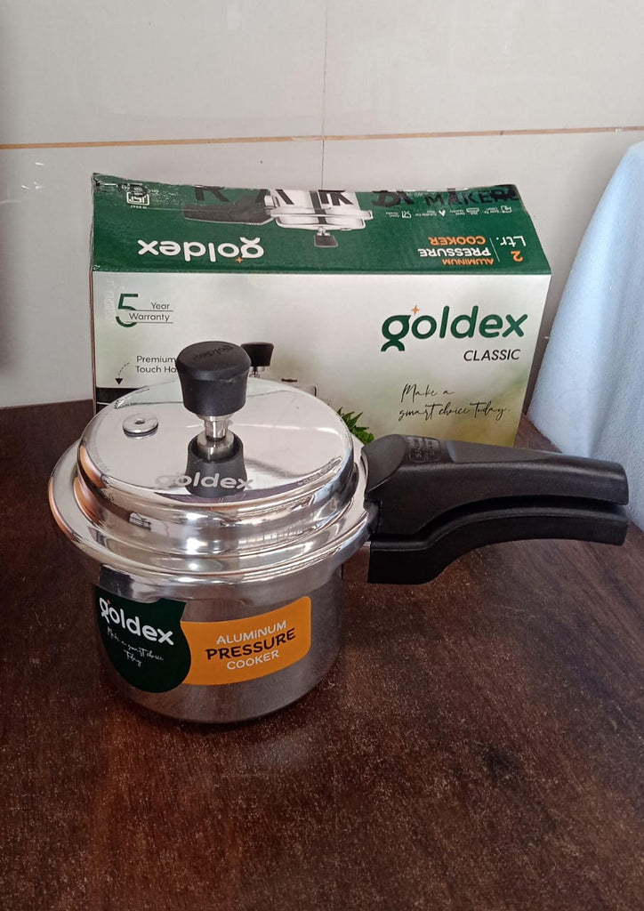 Aluminium Classic Goldex Pressure Cookers With Outer Lid Pressure Cooker, Heavy Bottom, Easy Open and Close, Healthy Cooking (Non-Induction Base) (2 Litres / 5-Year warranty)