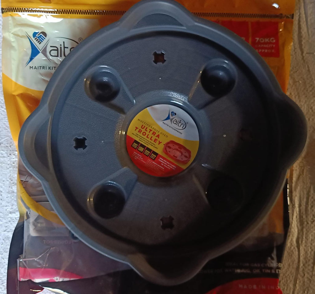 • No need to lift cylinder. LPG gas cylinder trolley- is a concept to make your LPG cylinder easily movable. It is made up of plastic making it durable and long lasting. LPG gas cylinder trolley comes with good quality wheels to make cylinder easily movable. A beautiful way to free up some extra space in your kitchen. No more scratches and rust marks on your floor heavy duty plastic good quality.