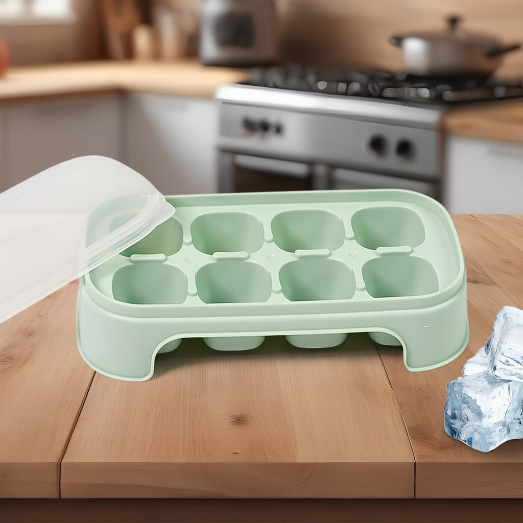 Ice Mold, 8 Grid Food Grade Portable Plastic Ice Tray Anti Slip for Kitchen for Home With Plastic Lid (1 Pc / 15×8 Cm)